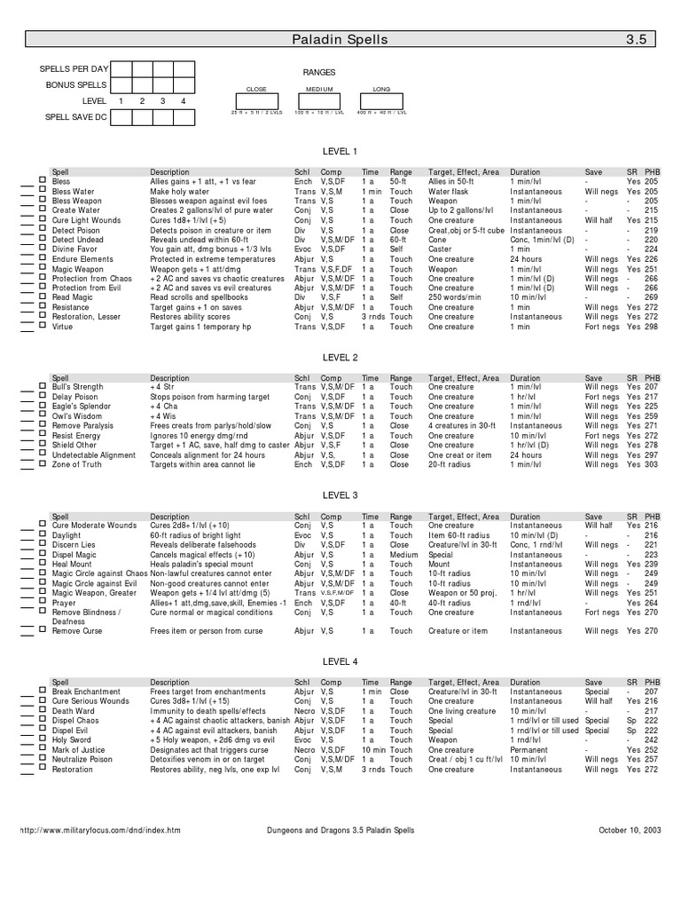 Paladin spell list 5e pdf. D d spell lists this document gathers the spells from the fifth edition player s handbook and organizes them in a variety of ways to aid reference for players and dms alike. Casting spells expends a slot of the spell s level or higher. A comprehensive list of all official paladin spells for fifth edition.