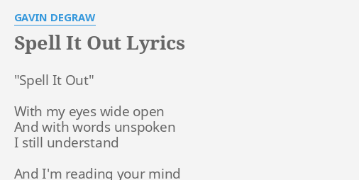 Spell it out gavin degraw lyrics. Lyrics to spell it out by gavin degraw. Spell it out lyrics gavin degraw spell it out. And i m reading your mind using every outline you re drawing in my hand.