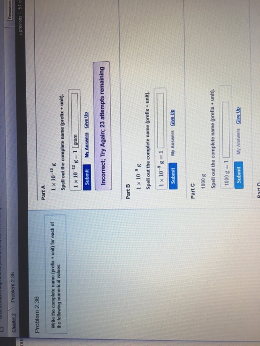 1 109g 1 part e. 1 x 10 12 g 1 submit request answer part b 1 x 10 9 g spell out the complete name prefix unit. Your score on this assignment is 98 2.